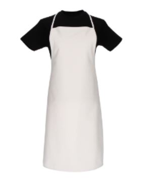 Avental com peito, de felpa por um lado e impermeável por outro lado.