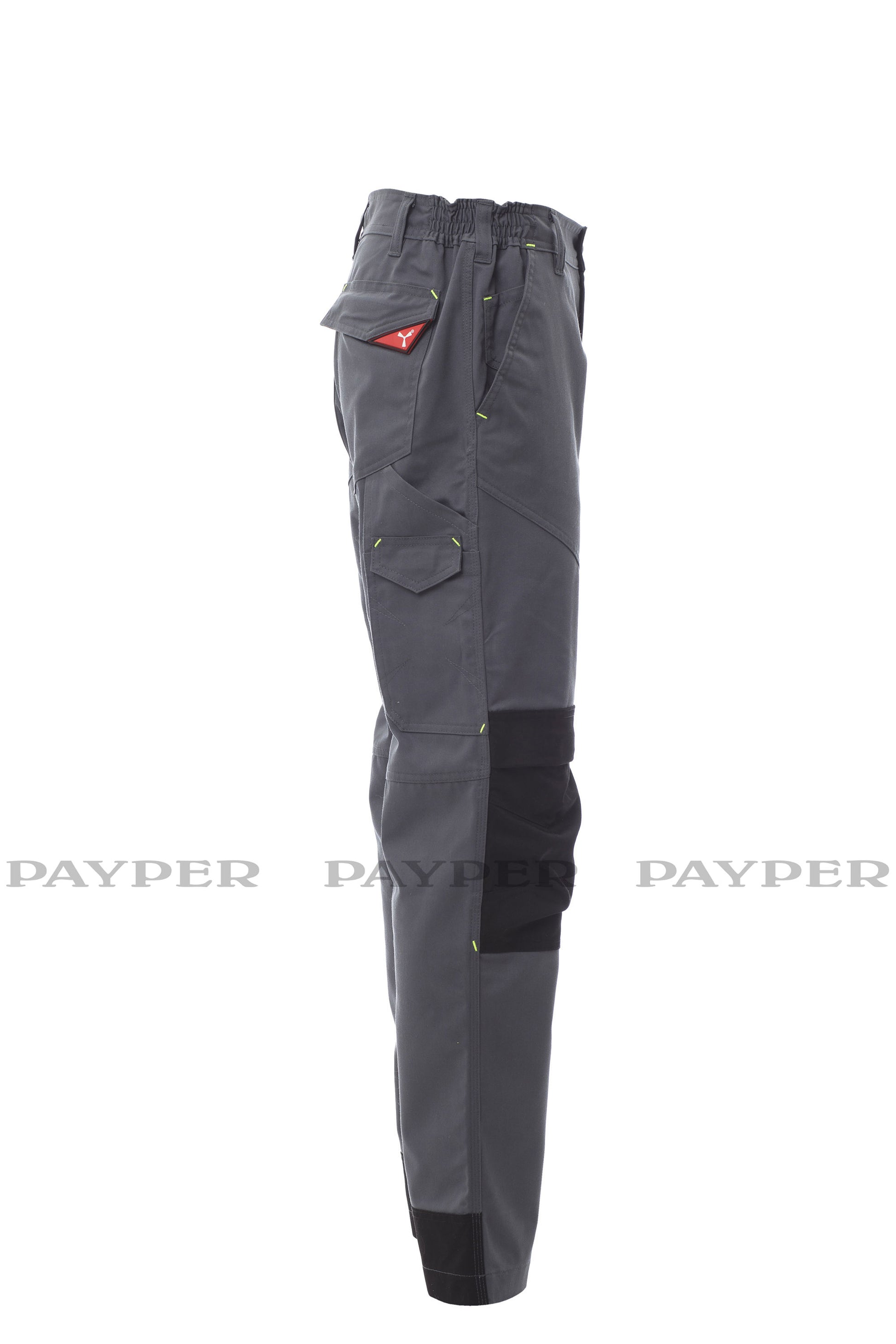 Calças unissexo multiestações com bolsos nos joelheiras , elásticos laterais e cós com presilhas, com fecho de correr e botão de plástico, dois bolsos clássicos na frente, bolso lateral esquerdo com LOCK SYSTEM, bolso para metro e um bolso para smartphone