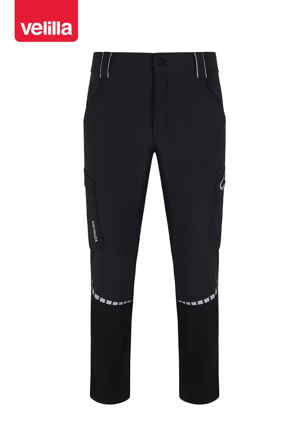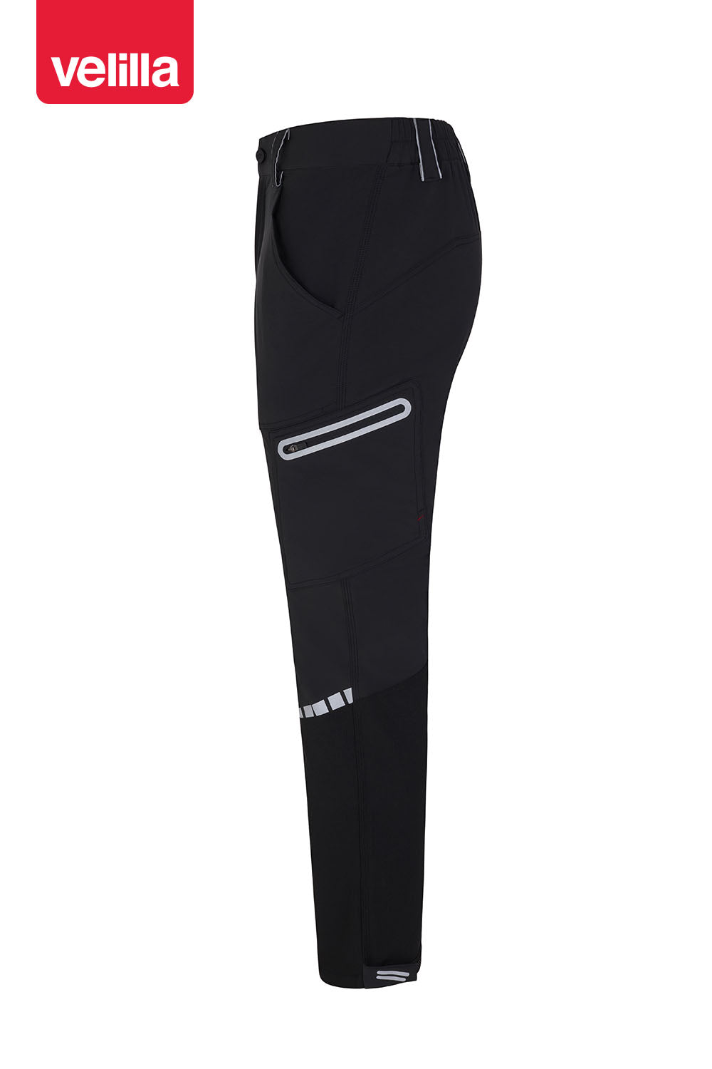 Calças elásticas de alto desempenho e resistência, Corte slim fit Fecho de correr central com botão personalizado Tecido hidrófugo Cós traseiro elástico ergonómico Presilhas largas com pormenores refletores Presilha assimétrica traseira Canesú traseiro Costura de segurança tripla Bainha de velcro 3D para um ajuste fácil Tecido de reforço Detalhes refletores 5 bolsos: 2 bolsos franceses; 1 bolso de chapa na perna esquerda com fecho de correr termosselado, pormenor refletor e aba de puxar; 1 bolso de chapa na perna direita com pala, fecho de correr e puxador e compartimento adicional para ferramentas; 1 bolso interior traseiro com fecho de correr termosselado e puxador personalizado.