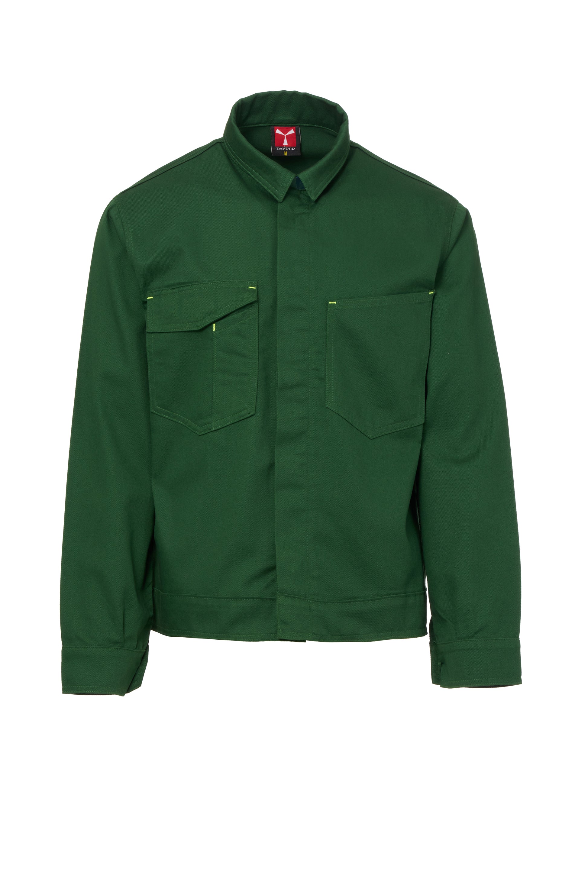 Casaco sem acolchoamento corte cintado modelo ganga, fecho à frente com botões em plástico revestidos, dois bolsos de peito com suporte para smartphone, porta-identificação, suporte de caneta e paleta com fecho de velcro, fecho no punho com botão e fundo ajustável com velcro. Interior não forrado.