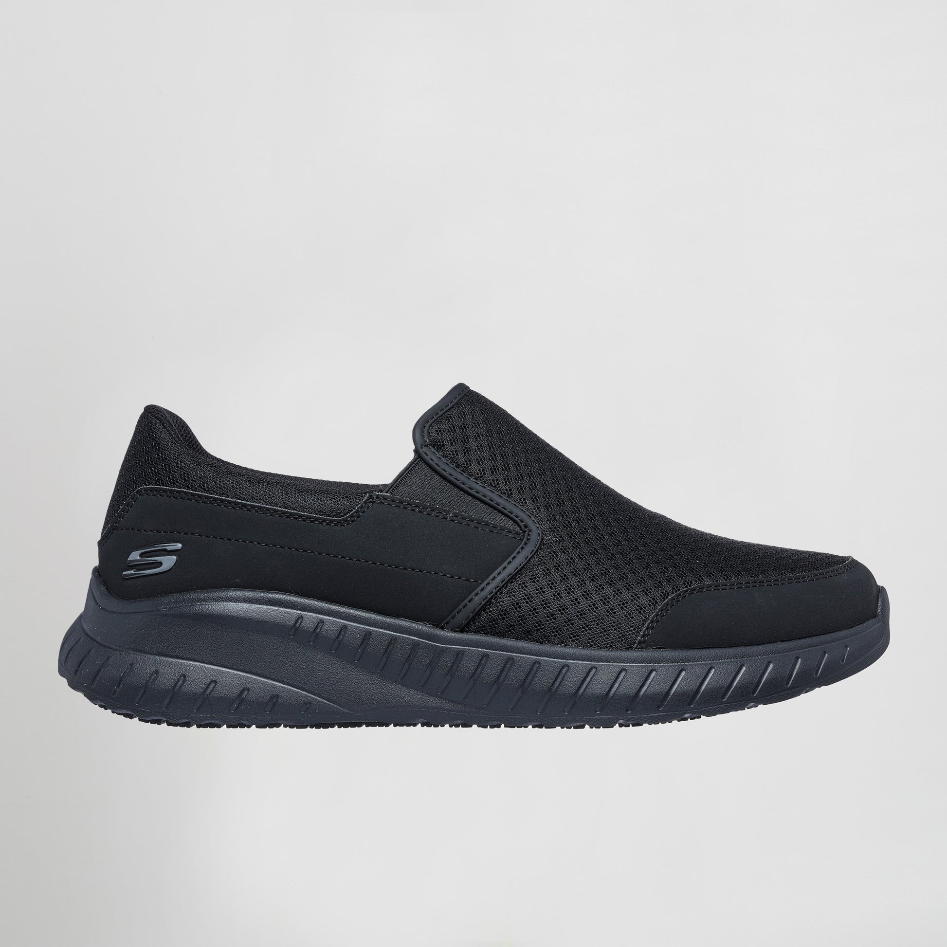 Mantém-se seguro e confortável durante todo o dia com as Skechers Work™ Relaxed Fit®: Squad Chaos SR - Urgran. Este modelo desportivo antiderrapante apresenta uma parte superior sintética e em malha repelente à água, sem atacadores, e uma palmilha almofadada Skechers Air-Cooled Memory Foam® para maior conforto.