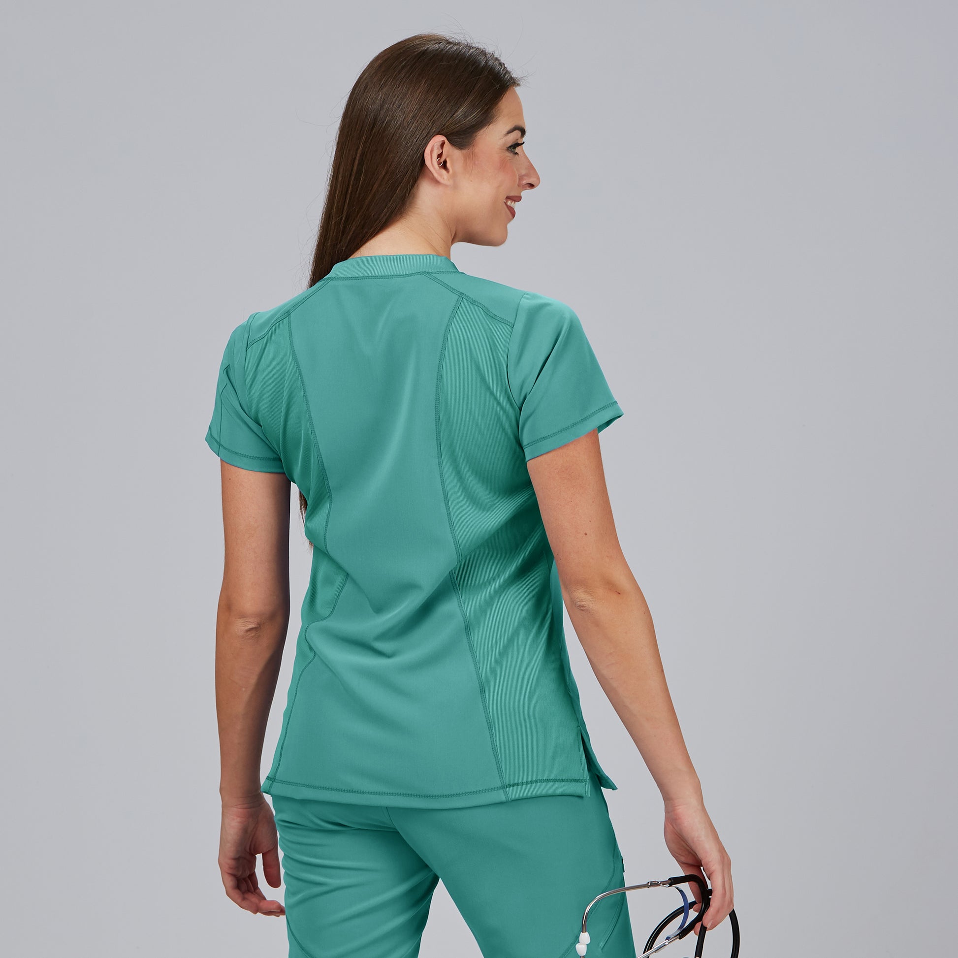 Tunica NANCY é uma peça profissional que combina conforto, design moderno e tecido sustentável, ideal para mulheres que trabalham na área da saúde, clínicas, farmácias, estética ou laboratórios. Confecionada em tecido técnico IRIS 74% PES RECYCLED 24% RY 2% EA - 180 gr/m², esta blusa é leve, flexível e respirável, garantindo desempenho e conforto em ambientes altamente exigentes. O decote em V e as mangas curtas proporcionam frescura e facilidade de movimentos.
